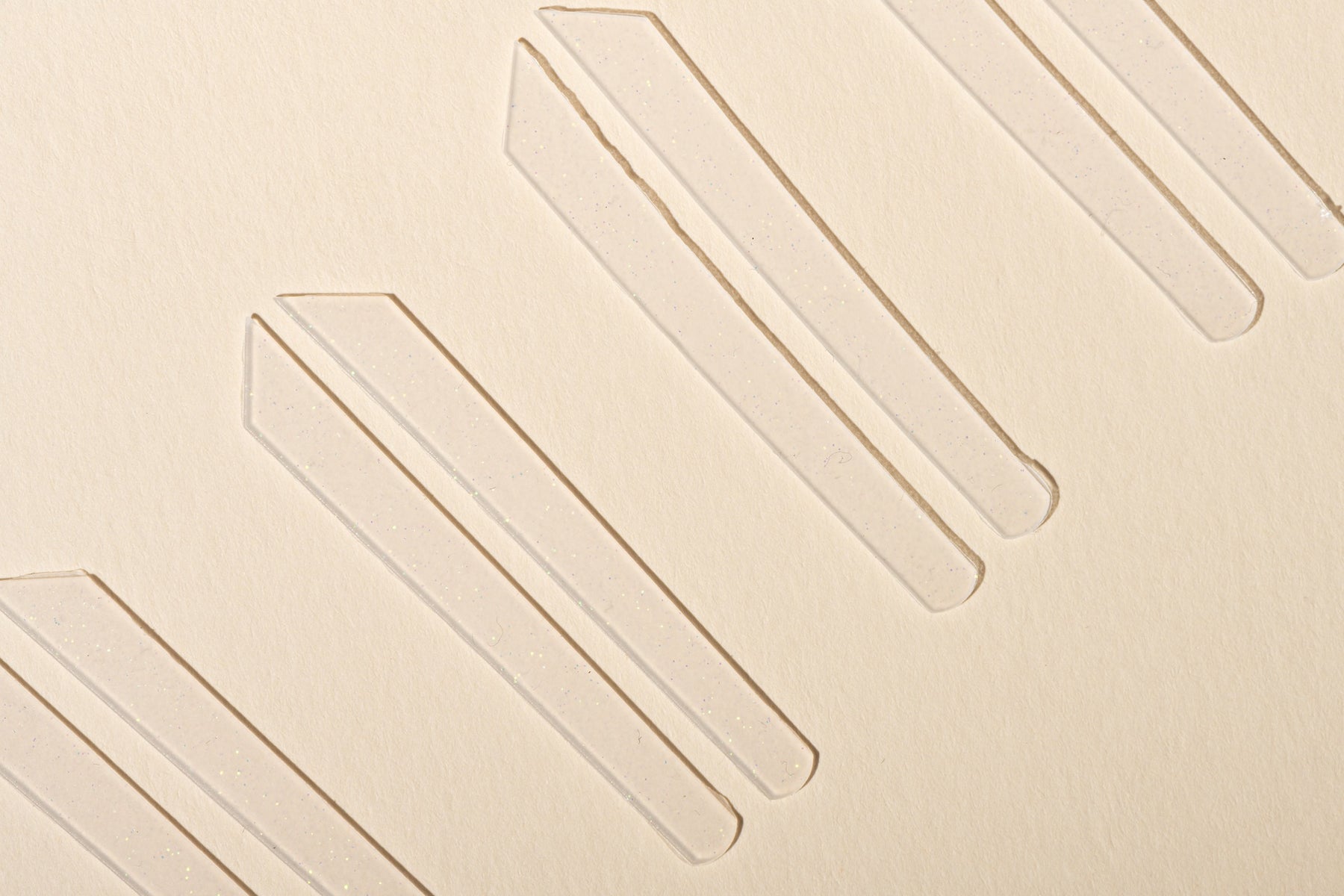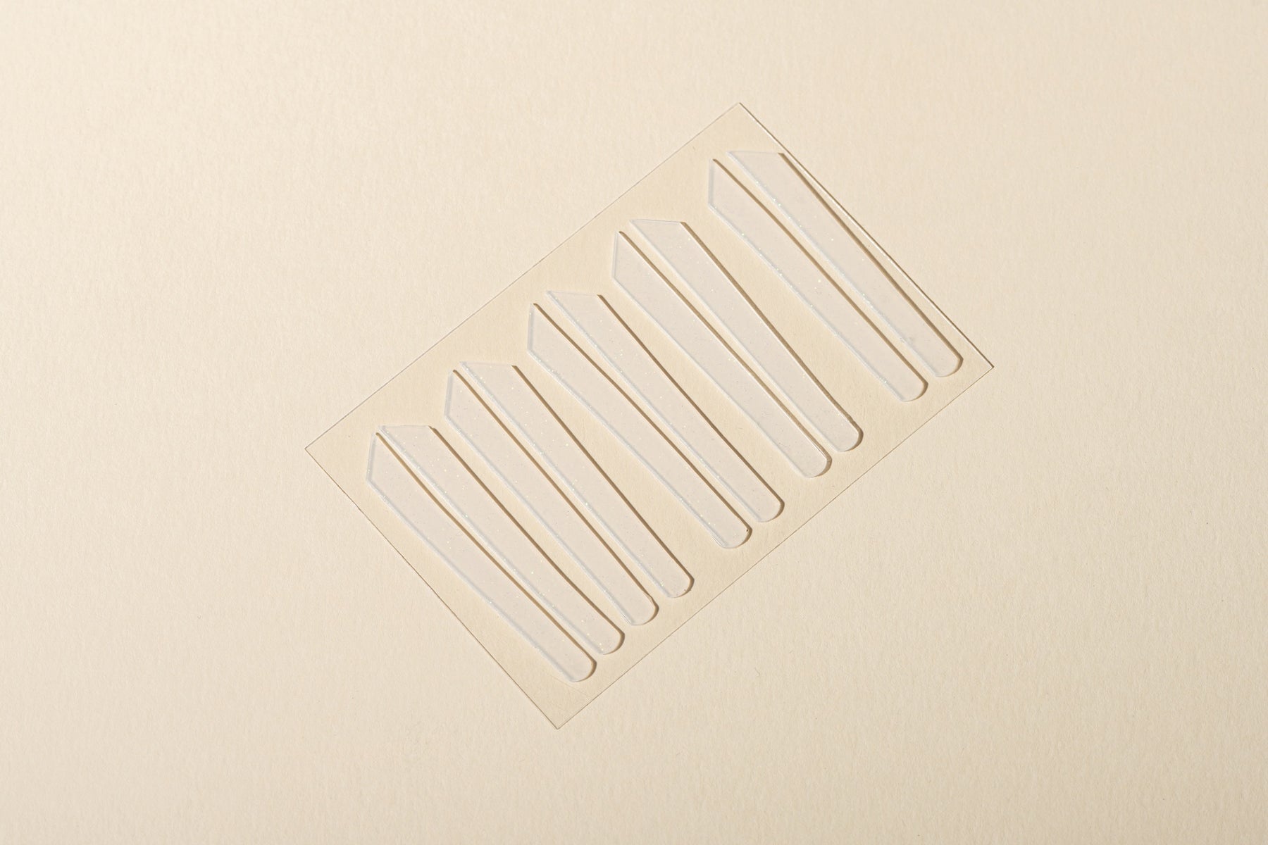 Breng ze voorzichtig aan, eventueel met een pincet, op het product zonder het product uit te duwen.  Belangrijk is om telkens een nieuw paar ribbons te gebruiken na lotion 1 zodat je geen ribbons met resten van lotion 1 aanbrengt op lotion 2.